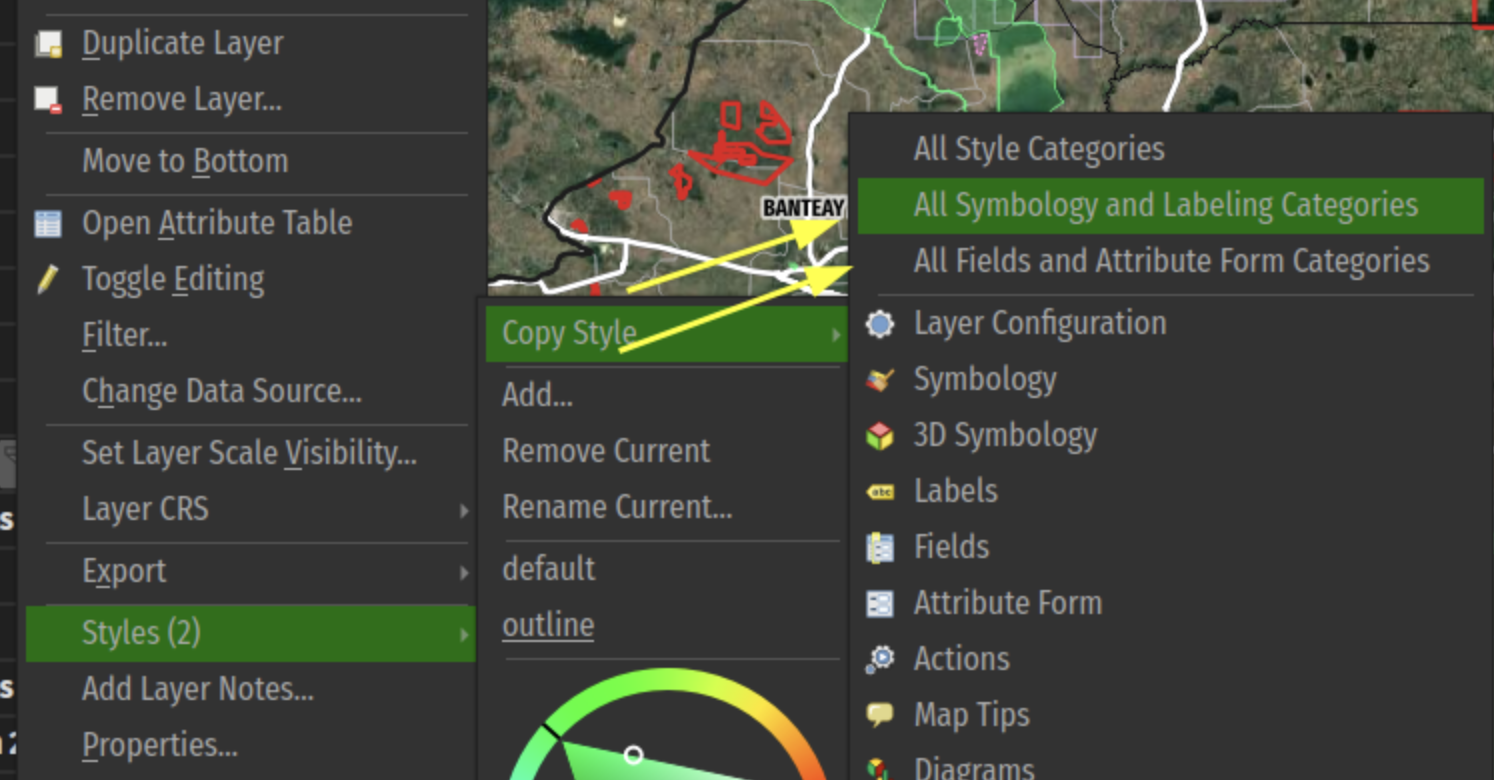 New grouped categories shortcuts have been added to the layer tree menu’s copy/paste style sub-menu. This allows users to rapidly copy/paste a set of grouped categories across layers.